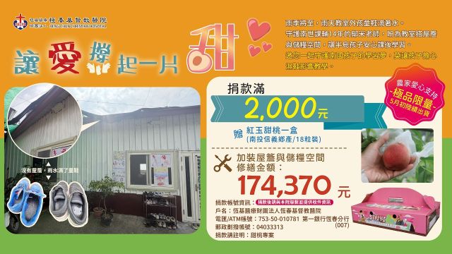 雨季將至,雨天教室外孩童鞋滴著水。 守護南世課輔14年的鄔米老師,盼為教室搭屋簷與儲糧空間,讓半島孩