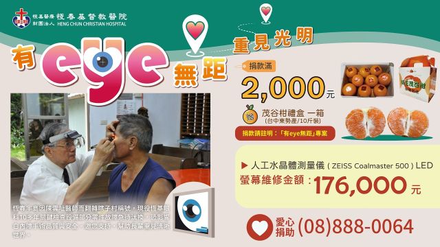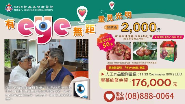 有eye無距 重見光明 恆春半島因陳雲址醫師而翻轉瞎子村稱號,現役恆基眼科10多年關鍵檢查設備部分零
